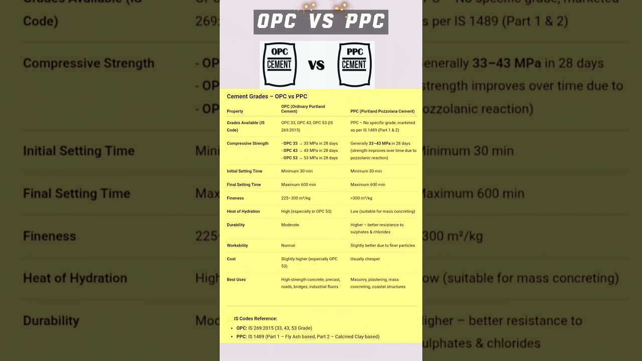 #OPC #PPC #CementTypes #OPCandPPC #CementComparison #ConstructionMaterials #BuildingMaterials #OPCvsPPC #CementDifferences #ConcreteBasics #ConstructionTips #BuildingConstruction #CementGuide #MaterialComparison #StructuralMaterials #DIYConstruction #ConstructionKnowledge #ConcreteMixing #CementUsage #BuildingFoundation